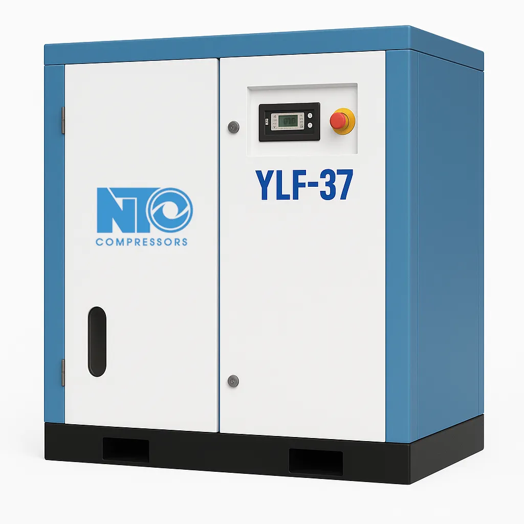 YLF 螺旋式空壓機採用 Y 型標準電機,直接傳動,運行平穩,節能耐用。為工廠、生產車間及需要穩定壓縮空氣的各類工業提供最佳空壓解決方案。